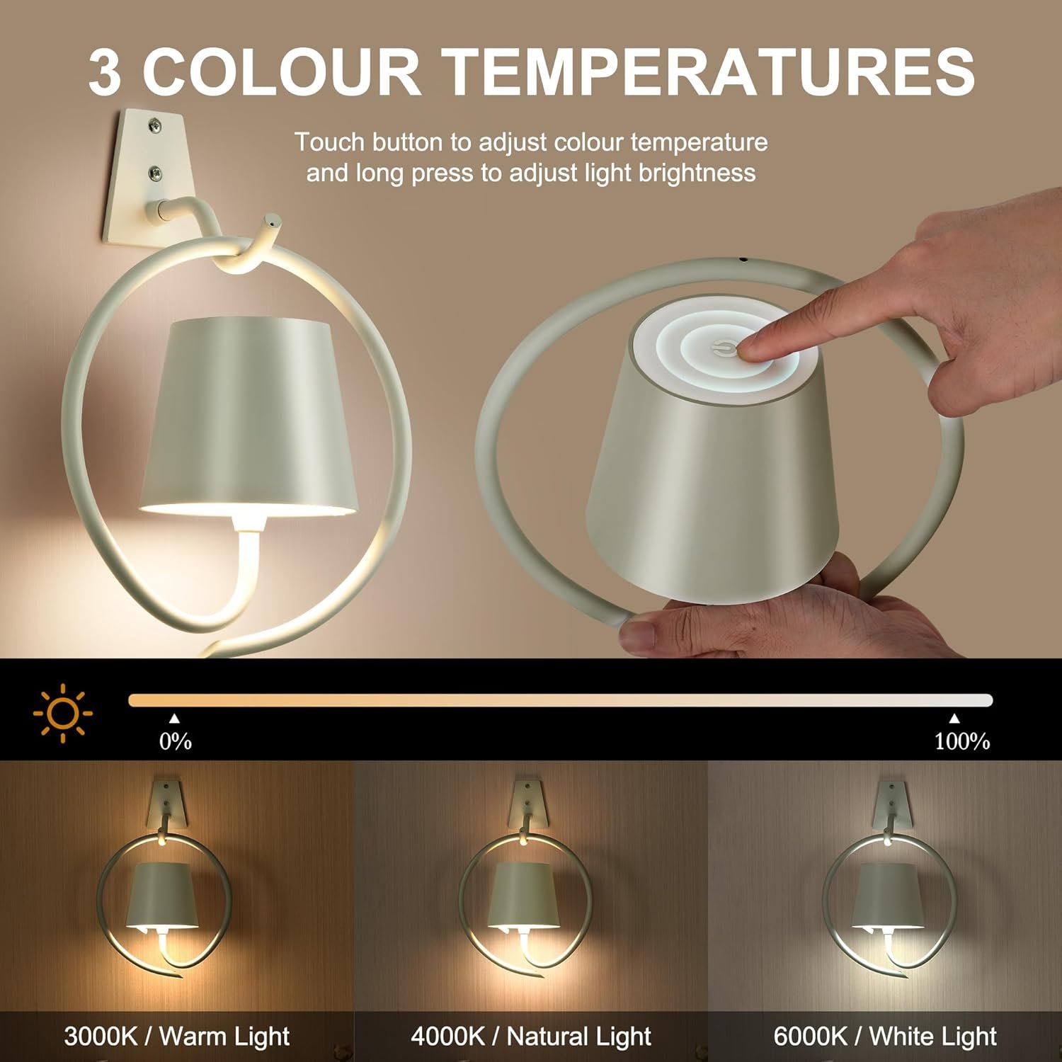 Įkraunamas sieninis LED šviestuvas su 3 spalvų pasirinkimu, reguliuojamu ryškumu, IP54Įkraunamas sieninis LED šviestuvas su 3 spalvų pasirinkimu, reguliuojamu ryškumu, IP54