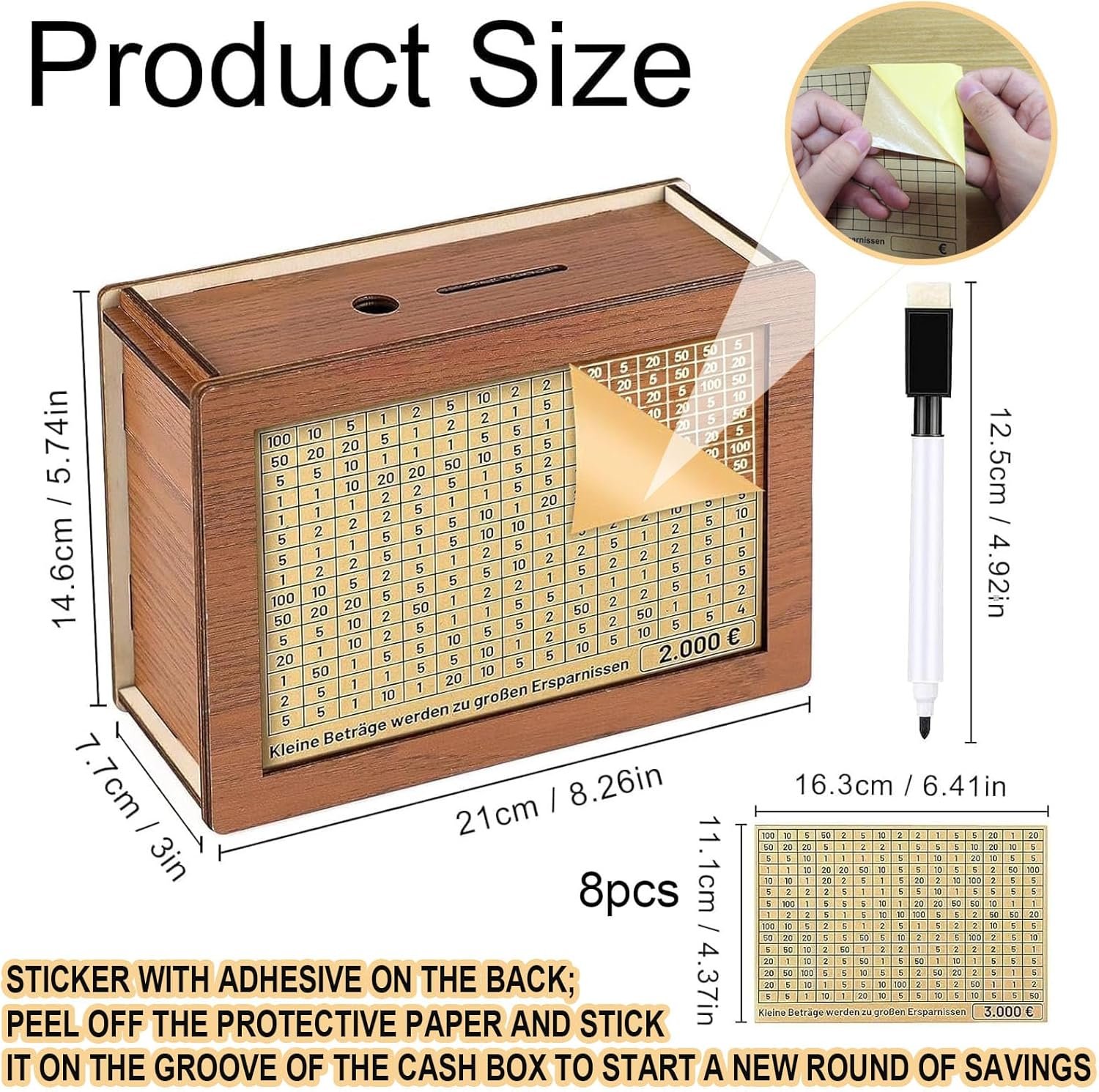 Medinė taupyklė su lipdukais ir žymekliu – vaikams ir suaugusiems, taupymo įpročiams ugdytiMedinė taupyklė su lipdukais ir žymekliu – vaikams ir suaugusiems, taupymo įpročiams ugdyti
