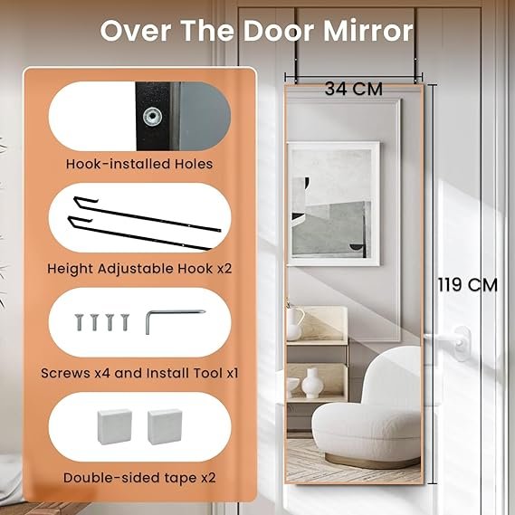 Pakabinamas ant durų – komplekte esančios metalinės kabės tinkamos durims iki maždaug 4,5 cm storio. Tai puikus sprendimas nuomojamoms patalpoms ar kai nenorima gręžti sienų.