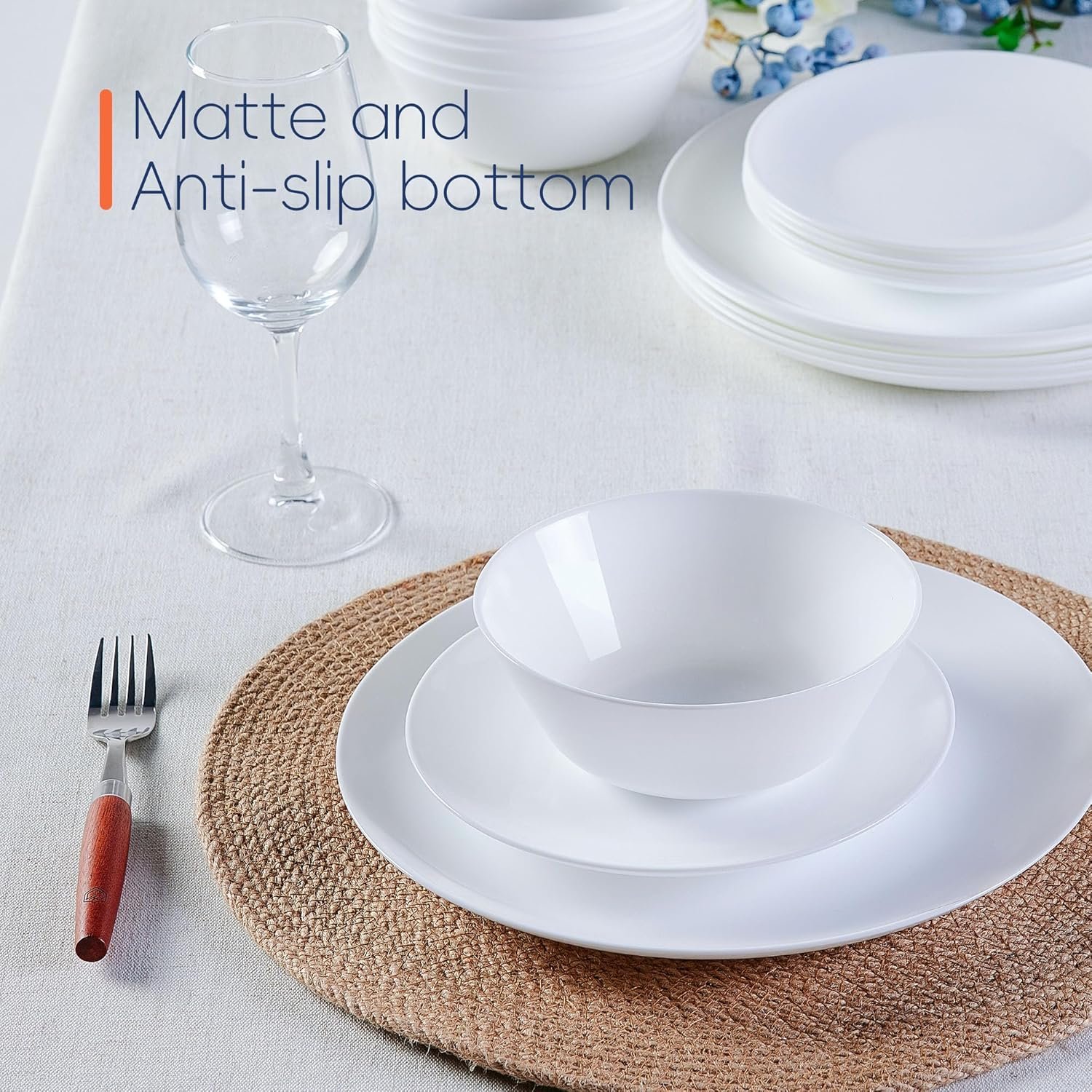 Šis indų rinkinys pasižymi subtiliu matinio stiklo atspalviu ir minimalistine forma, kuri suteikia rafinuotą išvaizdą. Dėl elegantiškos baltos spalvos ji puikiai dera prie įvairių stalo dekoracijų ir visada atrodo šiuolaikiškai.